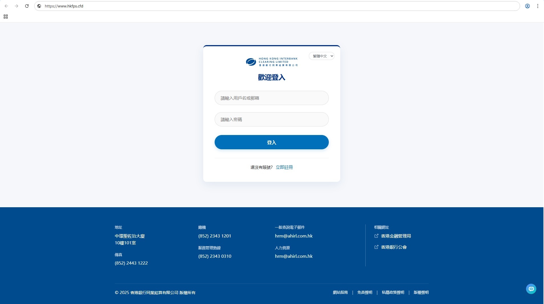香港銀行同業結算有限公司提示會員及市民慎防冒充本公司的偽冒網站(https://www.hkfps.cfd)。該偽冒網站誘導用戶提供登入資料,並引導用戶與冒充客服的人員進行對話。
